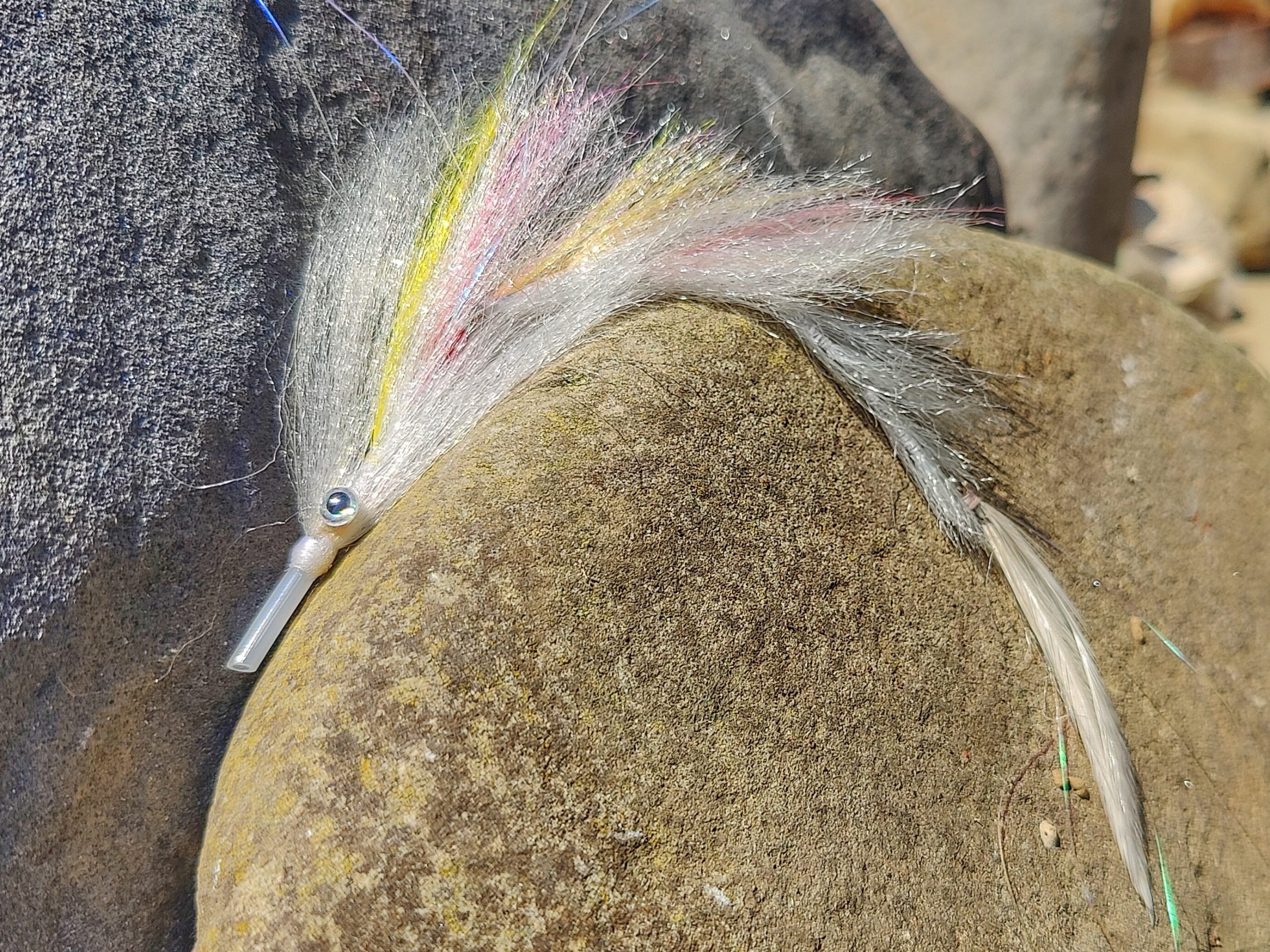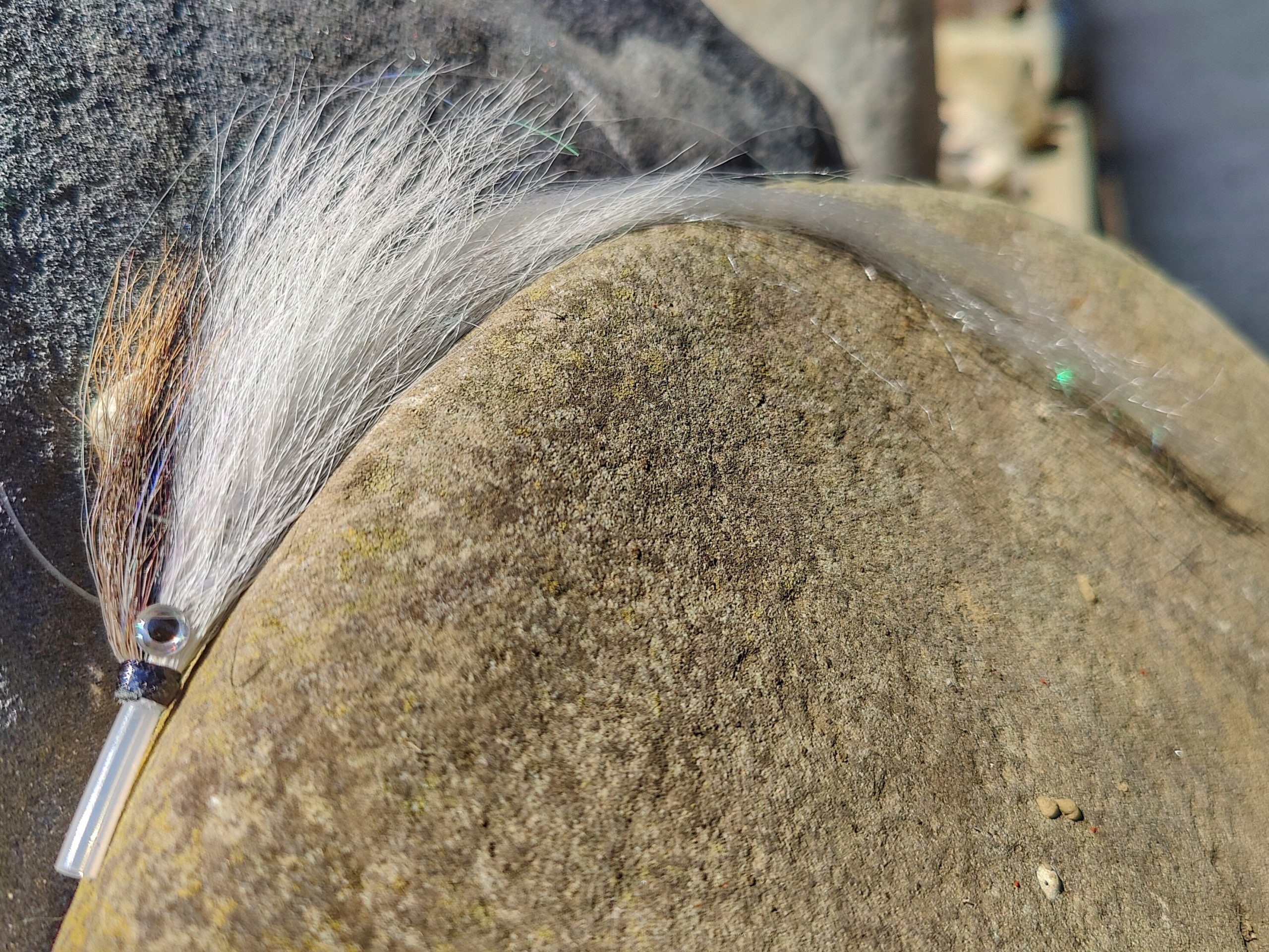 Hucho Huchen Gray-White tube fly min 15cm (9,5 inch)