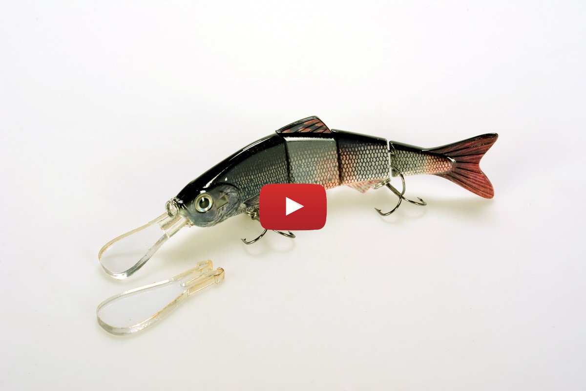 Grayling fishing lure is spinning lure for Hucho, Huchen, Danube taimen (Hucho Hucho), Pike, Zander, Catfish, Taimen. Wobbler with a changeable lip or bib. The longer and bigger the lip the deeper the lure will sink. Sinking jointed at 15,5 cm (6,1 inch), 35g (1,2 oz).